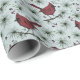 Dieses elegante Winterverpackungspapier zeigt ein Muster von handgezeichnet Roten Kardinal-Vögeln, die auf einem Kiefernzweig auf einem weichen, blauen Hintergrund stehen.