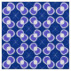 Helles abstraktes nahtloses Muster mit symmetrisch blauen geometrischen Formen mit weißen Akzenten, ideal für Hintergründe oder dekorative Designs, um Modernität und Dynamik zu schaffen.