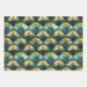 Blaues, aquamarines und goldenes Pfauenglas Geschenkpapier Set