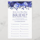 Dieses schöne blaue Blumenblatt Wie alt war die Braut? Brautparty-Spielblatt ist elegant und charmant - perfekt für jede Gartenhochzeit, botanisch, rustikal, romantisch, floral, formell oder alt. Seine exquisite Kombination aus anmutigen, mehrfarbigen blauen Rose und weich grüner Vegetation ist geflogen, zart und schön. Dieses lustige und leichte Spiel bringt sicher jede Menge Lachen in jede Dusche! Lassen Sie sich von Familie und Freunden Bilder von der Braut aus verschiedenen Altersgruppen senden und drucken. Nummer sie und Set sie in der Nähe dieser Spielblätter. Einfach jedem Gast ein Blatt geben (vergessen Sie nicht die Stifte) und den Wettbewerb gelassen beginnen! Sie werden erstaunt sein, wie viele Leute wirklich die Zeiten der Braut kennen. In Sekunden können Sie sehen, wie Ihr Spielblatt aussehen wird. Wählen Sie einfach diese Vorlage personalisieren und geben Sie den Namen der Braut ein.