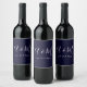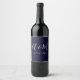 Blaues, elegantes Monogramm-Hochzeitsweinlabel Weinetikett