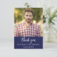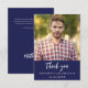 Ein Geburtstag Vielen Dank, Fotokarte. Ein marineblauer Hintergrund. Personalisieren und fügen Sie Ihr Foto und danke Ihnen notieren.