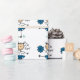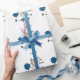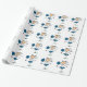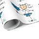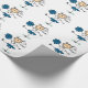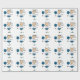 Verpackungspapier mit einer niedlichen Strichmännchencheerleader in einer weißen und blauen Uniform mit blauen pom poms.