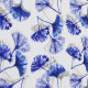 Ein schlichtes, aber elegantes Design von blauen und weißen Gingko-Blätter mit grauem Schatten.