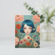 Blaues Haar und Blume Postkarte