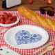 Blau-weiße Wasserfarbe Herzdesign auf weißem Hintergrund mit Tulpe abstrakt. Die Hintergrundfarbe kann geändert werden.