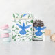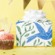 Blaues Hummingvögelmuster, grüne Blätter Geschenkpapier
