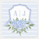 Blaues Hydrangea Monogramm Wappen mit Streifen Bev Quadratischer Aufkleber