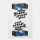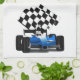 Blaues Rennfahrzeug mit Checkflagge Geschirrtuch