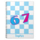 Dieses blaue Schachbrettmuster mit personalisiertem 67 Notizbuch-Design zeigt mutige rosa und blaue Ziffern auf einem spielerischen Schachbrett-Hintergrund. Perfekt für Kinder, Schüler und Jugendliche, die lustige, individuelle Styles lieben. Ein helles 67 Zahlen-Design fügt Flair und Spaß hinzu. Personalisieren Sie es mit jedem Namen.