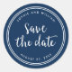 Blaues Skript und weiße Streifen Save the Date Runder Aufkleber
