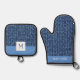 Blaues Strick-Muster Ofenhandschuh & Topflappen-Set