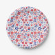 Blaues u. korallenrotes Blumenmuster Pappteller