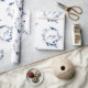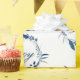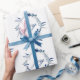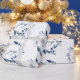 Modernes Blaues u. Weiß mit Skript FREUDE-Typografie und minimal entworfenem Zweig-Korolla-Muster-WeihnachtsPackpapier