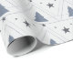 Blaues Urlaubspapier mit Bäumen und Sternen. Ideal, um diese Weihnachtsgeschenke mit Sorgfalt unter den Baum zu packen und zu platzieren.
