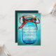 Blaues Weckglas-tönten rustikale Land-Hochzeits-Einladungen mit einem Blau Weckglas auf einem beunruhigten Hintergrund des Aqua Blau ab. Das Weckglas hat einen gebrannten orange rötlichen Bogen, der um es gebunden wird. Die Rückseite der Einladung ist Aquablau mit dem Wort "Liebe" ist weißes Skript in der Mitte. Diese sind für jede mögliche Landarthochzeit einschließlich rustikale Hochzeiten, Scheunenhochzeiten und irgendwelche Hochzeiten unter Verwendung der Maurergläser im Hochzeits-Empfangsdekor groß.
