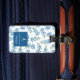 Niedlicher Blumengepäckumbau mit einem Muster der Vergissmeinnichte in Blauem, in weißem und Grün. Fügen Sie Ihren Namen und Initiale auf einem blauen Aufkleber hinzu. Die Rückseite kennzeichnet einen Blumenzweig auf einem dunkelblauen Hintergrund und Sie können mit Ihrem Namens- und Adresse personifizieren.