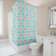 Blaugelb rosa 60er 70er Blumenkarton Duschvorhang