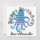 Cooler, blau gestreifter Oktopus mit Text: Happy Birthday und eine Namensvorlage. Klicken Sie auf Personalisieren und ändern Sie den Namen in Ihren Namen.