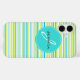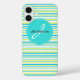 Blaugrün, schlicht, elegant Streifen Monogram Name iPhone 16 Plus Hülle