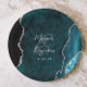 Blaugrüne Achat-Silber-Schrift Hochzeit Pappteller