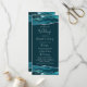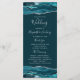 Dieses elegante, moderne Hochzeitsprogramm verfügt über blaugrüne Wasserfarbe-Achat-Ober- und -Untergrenzen, die mit silbernem falschen Glitter besetzt sind. Der Text erscheint in eleganter silbergrauer Handschrift und Kupferstich-Schriftarten auf einem tiefen Blaugrün-Hintergrund.