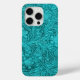Blaugrünes Wildlederleder-Look Retro Blumendesign iPhone 15 Pro Hülle