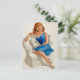 Klassische PinUp-Karte mit einem schönen PinUp Girl in einem blauen Kleid auf einem Sofa, gemalt von Arthur Sarnoff (1912-2000)