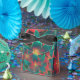 Extravagant! Blau liegt auf rotem Hintergrund!