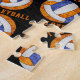 Dieses Volleyballmusterpuzzle für Mädchen besteht aus einem größeren, blauen, orangefarbenen und weißen künstlerischen, stilisierten Volleyball, auf dem ihr Name und ihre Jerseynummer personalisiert werden können, der sich aus kleineren blauen, orangefarbenen und weißen Volleybällen auf schwarzem Hintergrund und "I Liebe Volleyball" in orangefarbenem Text zusammensetzt, der sich zwischen den gewellten Reihen der Volleybältesten - durch Katz_d_zynes