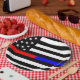 Blaurot-dünne Linie Polizei Feuerwehr Symbol usa Pappteller