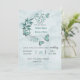 Romantische blaue Schmetterlinge Blätter Blumen Hochzeitseinladung