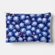 Blaue Edelsteine und Kristalle, mit verschiedenen Größen und facettierten Flächen, die Licht reflektieren. Die Anordnung schafft eine visuell reiche Textur mit roten Farbtupfern.