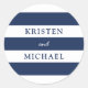Nautikblau-weiß gestreiftes Hochzeitsaufkleber. Ideal für eine Hochzeit der Marine (Militär) oder des Seehauses. Personalisieren Sie es mit Ihren Hochzeitsdetails.