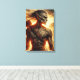 Ein mächtiger und auffallender elfischer Krieger steht mit leiser Intensität, seine gechiserte Form ist mit komplizierten, Stammesmarkierungen verziert, die mit einer inneren Lumineszenz leuchten. Sein langes, windgefegtes Haar und sein scharfes Profil, mit spitzen Ohren, rufen ein Gefühl uralter Weisheit und ungezähmte Stärke hervor. Mit einem Pfeilchen über dem Rücken und der dramatischen Kulisse einer feurigen, elementaren Landschaft ist er eine faszinierende Vision eines erbitterten und dennoch edlen Wächter, bereit für den Kampf inmitten eines Weltlenzes.
