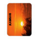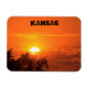 Ein Schuss eines Blazing Kansas Orange Sonnenuntergangs mit Wolken und Silhouette, der hell und farbenfroh nördlich von Hutchinson Kansas USA draußen im Land ist. Das ist auf einem flexiblen Square Magnet.