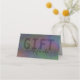 Berufliche, moderne, gebürstete Metal-Illustration mit farbenprächtigen holografischen Overlay in Regenbogenfarben. Trendy Geschenkgutschein mit fett formatiertem Serif-Schriftart und handgeschriebenem Script. Enthält kein richtiges Hologramm.
