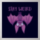 Vector Cartoon Illustration einer wackeligen Vampirfledermaus, die mit der Phrase Bleibe Weird auf den Kopf steht. Schlüsselwörter: Tier, Fledermaus, Fliegen, Fliegen, Fliegen, Halbwal, Säugetier, beängstigend, spooky, Flügel, lila, Inspiration, niedlich, albern, verrückt, verrückt, verrückt, verrückt, lustig, Spaß, Joker, bleibe, seltsam
