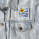 Sonnige positive Sonnenblumephotographie und -mitteilung. Dieser Pullbackknopf wird mit einer Fotografie des niedrigen Winkels einer blühenden Sonnenblume des Singles vor einem teils bewölkten Himmel geschmückt. Die Typografieaussage fügt eine positive Anmerkung einem Spaßbild hinzu. Der runde Knopf kommt in fünf Größen.