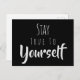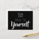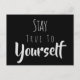 Positive Bestätigung "Bleibe dir selbst treu" Schwarze Postkarte mit grauer Typografie