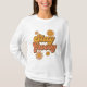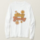Ein kühnes und lebendiges 70er-inspiriert Design mit der Phrase "Bleibe Groovy" in Retro-Typografie, umgeben von spielerischen, trendigen Blume. Ideal für Liebhaber von Vintagem Stil, boho-Atmosphäre und Wohlfühlmode.