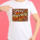 Hier ist ein 70er inspiriert T - Shirt-Design mit fett, groovt Typografie lesen "Bleibe Groovy" mit lebendigen, Retro-Blumenmustern. 🌸 ✨ 🌼