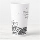 Latte Tasse mit gezeichnet Papierboot. Es ist kein Abenteuer, wenn du weißt, wohin du gehst.. Die Wörter und die Hintergrundfarbe können angepasst werden.