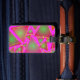 Gemacht mit mit den grünen, orange und gelben Dreiecken auf einem rosa Hintergrund.