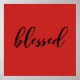 Cette affiche a une base rouge et dit béni en caractères noirs. Ajoutez un cadre et faites de ce morceau une pièce élégante.
