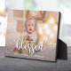 Diese hübsche, einfache Tischplatte zeigt das Wort BLESSED in einem wunderschönen weißen Drehbuch und alle Informationen, die Sie unten gewollt haben, in jeder Schriftart- und Schriftart-Farbe auf Ihrem LieblingsFoto. Gut als Geschenk oder kreativ für sich selbst. Horizontal oder Vertikal verwenden.