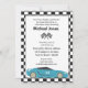 Ce design personnalisé présente une invitation à la course Blue 10th Birthday Race Car. La voiture de course est sur un arrière - plan à damiers noir et blanc. L'invitation est parfaite pour la fête du 10e anniversaire d'un garçon. L'âge peut être modifié pour répondre à vos besoins. L'invitation est dimensionnée à 5" x 7" et est imprimée sur un stock de carte lourd et de haute qualité. L'invitation est accompagnée d'une enveloppe. Customisez avec les détails de votre fête.