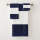 Les serviettes de bain sont recouvertes de rayures bleues blanches dessinées par des Deluxephotos.