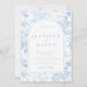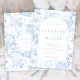 Elégant motif délicat Chinoiserie avec fleurs bleu clair blanc printemps faire-part de mariage classique d'été avec marié et marié monogramme sur le dos.