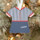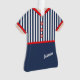 Chemise à rayures bleues et blanches, jupe bleu assortie, taillée en rouge... présente le nom de votre bien-aimé. Sur le dos est un petit coeur "tatouage" en blanc, avec le libellé, "Noël 20xx" en rouge. Le nom et tout le texte sont entièrement modifiables ; vous pouvez également modifier le style de police et les couleurs du texte.